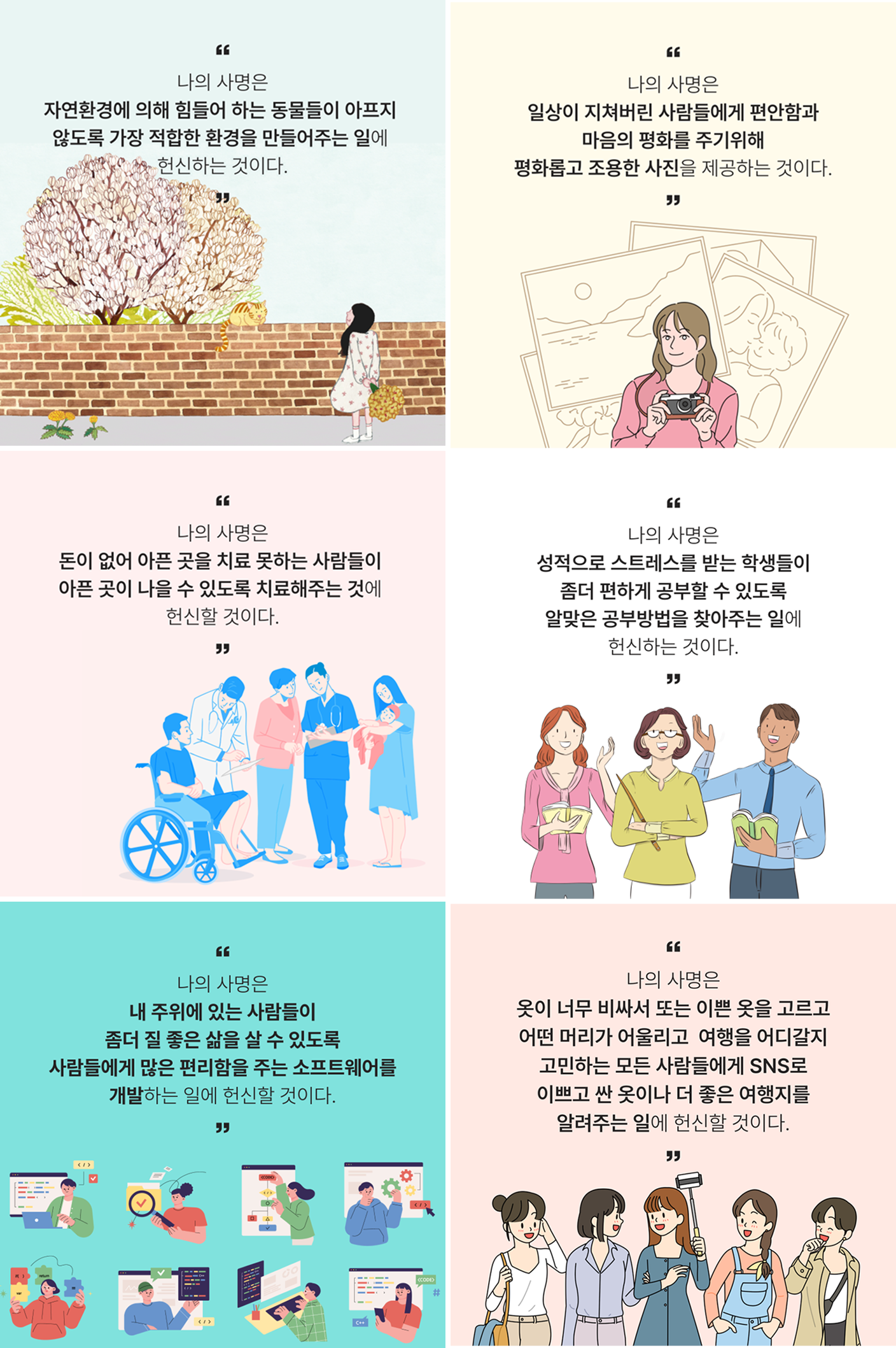 ⓵ 미래의 꿈을 적어보고 목표설정을 해보는 경험을 통한 긍정적 사고를 가질 수 있어요!